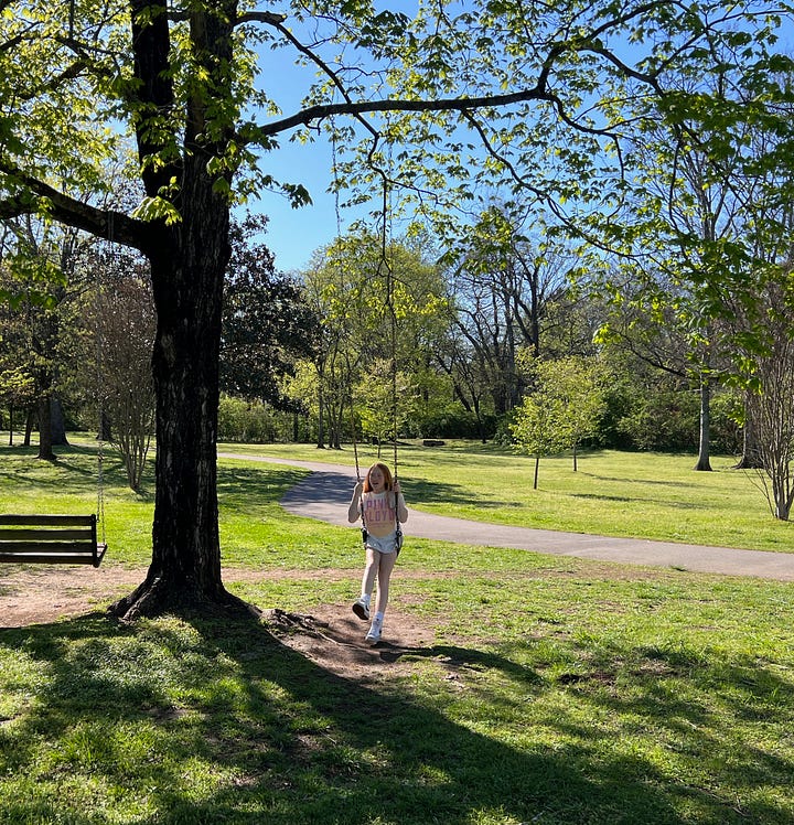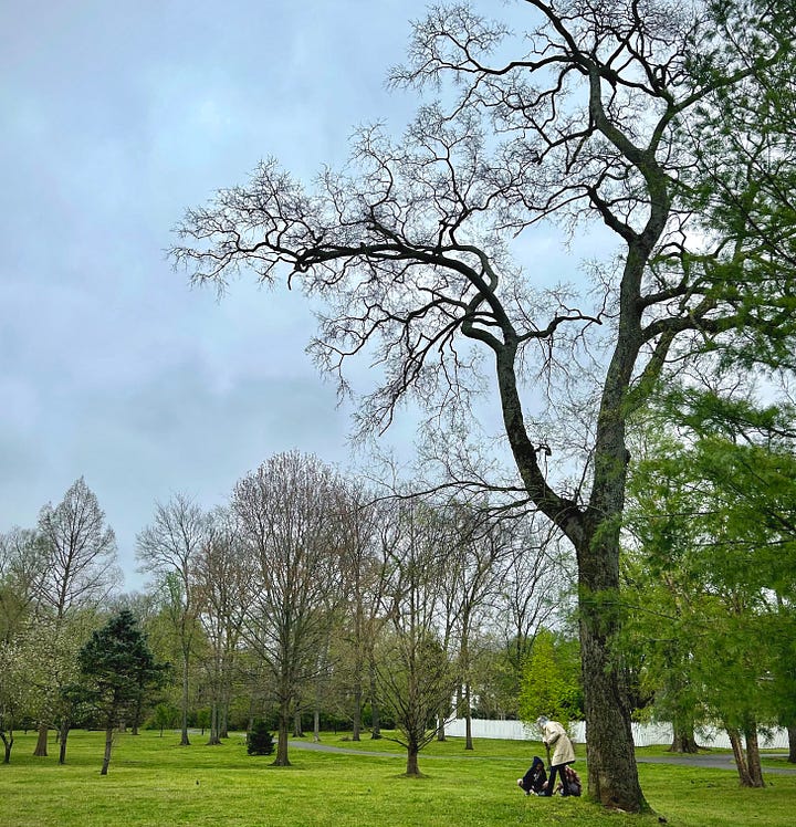 Because of Covid, cancer, cost and concern for health challenges while traveling, we hadn't seen our three granddaughters for over a year. This four day trip to Nashville would make up for lost time. The weather was cold and rainy for the first three days and then Easter Sunday we awoke to a brilliant blue sky. Outside our bedroom window a red bird I later learned was a Northern Cardinal, sang loudly from the perch of a bird feeder hanging from the branch of a willow tree, it's leaves wrapped tightly within its buds, nudging forth from their winter nap.The color of the bird was so vibrant that I called out to Annie to hurry to the window and marvel at the eternal beauty of nature. After breakfast I sat in the sun on their back porch with a cup of coffee and felt my core begin to warm after a long, snowy winter in Central Oregon. My buds began to unfurl and I did my own silent singing.
