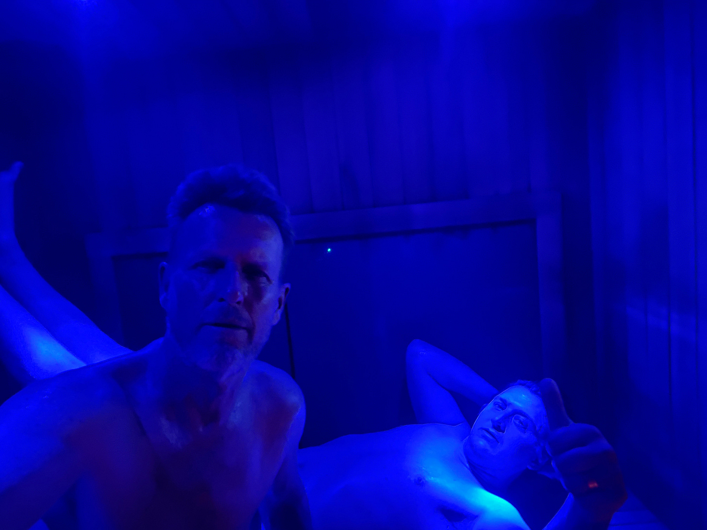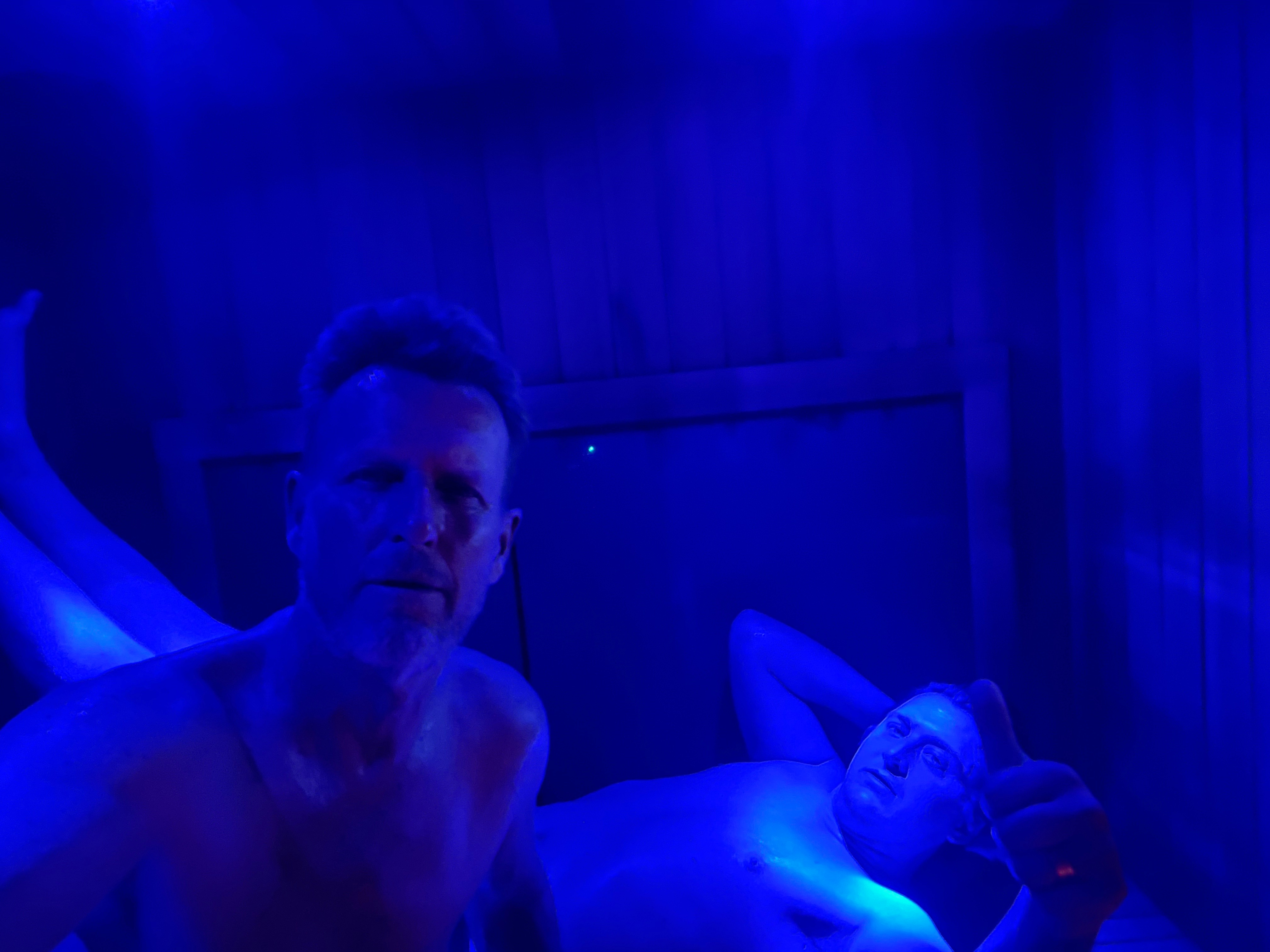 We arrived for our sauna appointment right on time. Erland booked the deluxe room large enough for two people. The rest of the rooms are all singles. There are infrared panels built into the cedar-lined walls, as is an iPad that can access music playlists, the internet and thermostat controls, although it was set to the maximum of 140 degrees and we didn't reduce it. The hot, dry air filled our lungs and the detox sweat begin to emerge from our pores as we followed a guided meditation Erland had saved to his iPhone. We went twice over the four days of our trip. The hot box in a dark room with only blue pin lights from the ceiling and the illumination of the iPad screen was like a subterranean place of worship, eliciting deep, honest conversation about life and death between a father and son.